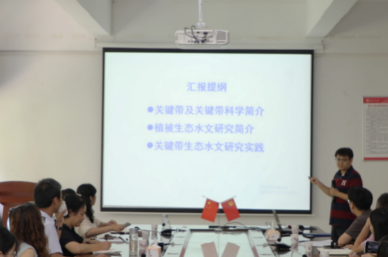 在3309会议室,徐宪立研究员作了题为《喀斯特关键带生态水文研究实践》的学术报告,报告由赵翠薇副院长主持,师生近百人聆听了此次报告。徐宪立研究员紧紧围绕“喀斯特关键带生态水文”这一主题,首先介绍了地球关键带的定义和意义,再从植被与水的关系切入讲座内容,分别讲解了喀斯特关键带结构及其约束的生态水文过程与功能的研究背景、喀斯特关键带生态水文学基本科学问题、Budyko关键带生态水文模型、关键带结构的探测和反演及表征、表层植被结构的调整优化等五部分的内容。