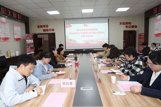 5月17日下午,贵州商学院管理学院党总支书记田歆一行到87978797威尼斯老品牌进行党建交流,院党委书记杨建红、副书记郭锐及相关工作人员参加交流会,会议在学院二楼党团支部书记会议室举行。