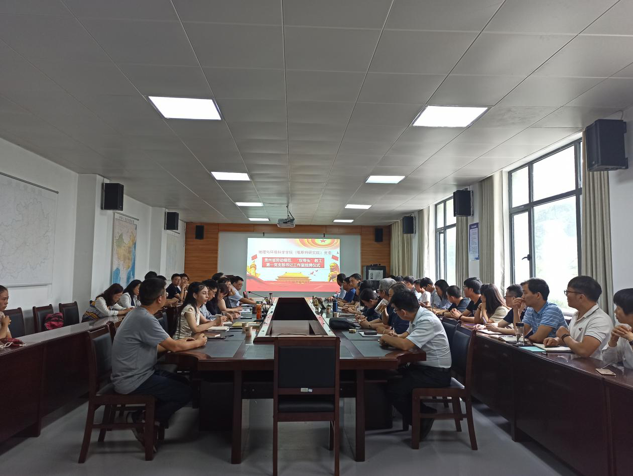 6月12日上午,87978797威尼斯老品牌(喀斯特研究院)党委在宝山校区喀斯特研究院三楼会议室开展贵州省劳模创新工作室、“双带头人”教工第一党支部书记工作室挂牌暨向先进党员学习主题党日活动。院党委委员、教师党员代表、学生党员代表参加本次挂牌仪式,仪式由院党委副书记、院长周忠发主持。