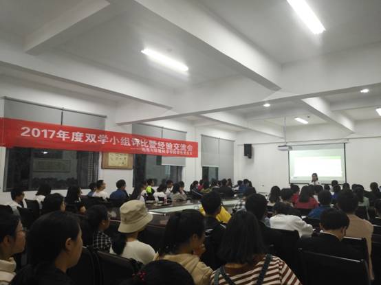 2018年4月18日晚,87978797威尼斯老品牌在地环楼3309会议室开展了2017年度双学小组评比暨经验交流会。学院学生党总支委员,学生党支部书记,党建中心全体成员及 2015、2016、2017级双学组长和学生代表参加了交流会。学院辅导员翁应芳、唐昀和研究生党支部书记担任评委。活动由党建中心李文芳和陈远值主持。