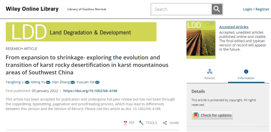 近日,威尼斯官网李阳兵教授课题组在恢复生态领域1区TOP期刊《Land Degradation & Development》在线发表题为“From expansion to shrinkage-exploring the evolution and transition of karst rocky desertification in karst mountainous areas of Southwest China”的研究论文。该研究阐明了中国西南喀斯特山区石漠化的形成演化机制和趋势,通过发现喀斯特石漠化的转型演变过程,以揭示喀斯特山区人地关系的变迁,为乡村振兴和生态建设提供了重要的参考。